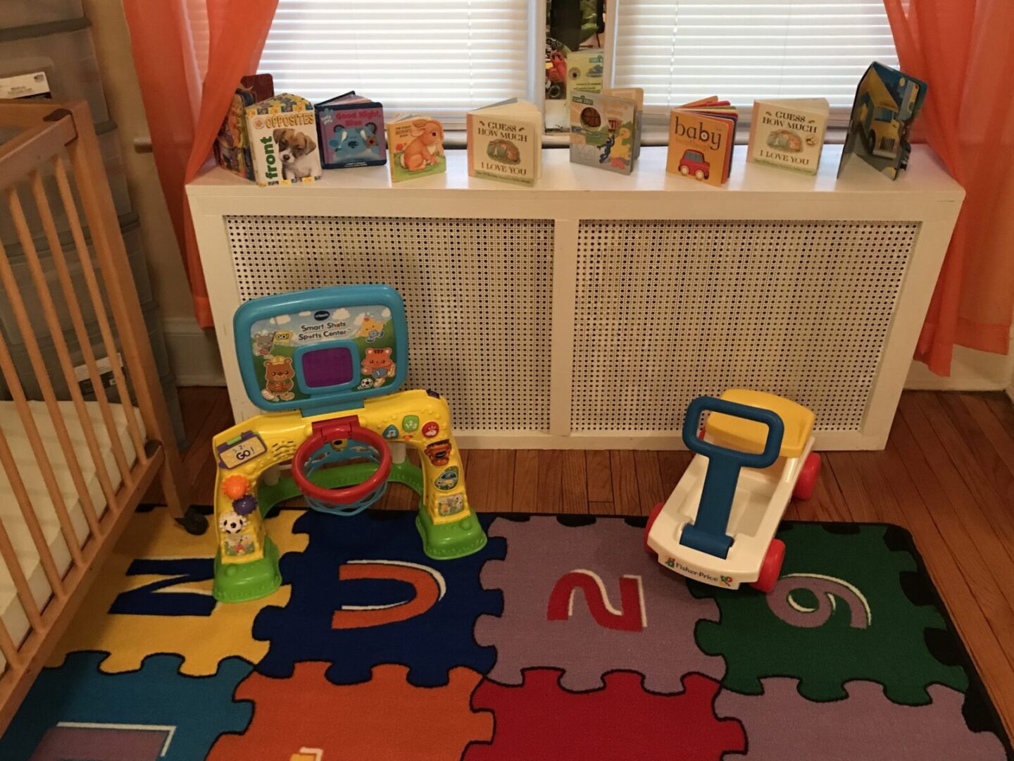 • Colorful playschool area with crib and toys